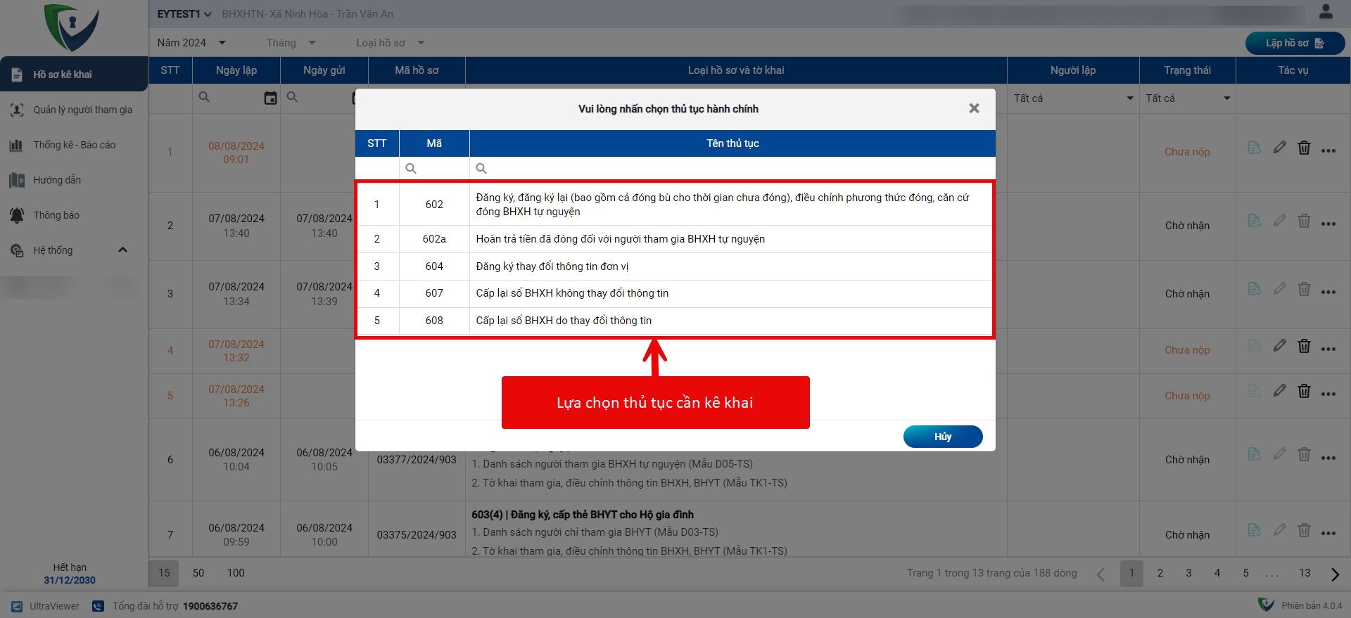 - Bước 2. Lựa chọn thủ tục cần kê khai