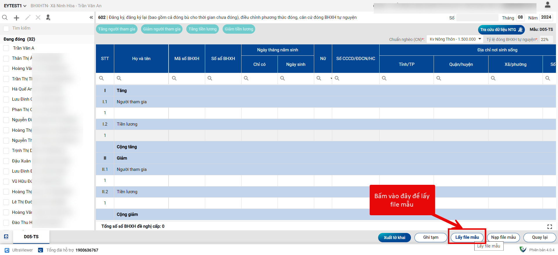 - Bước 3. Trên lưới kê khai, bấm vào Lấy file mẫu