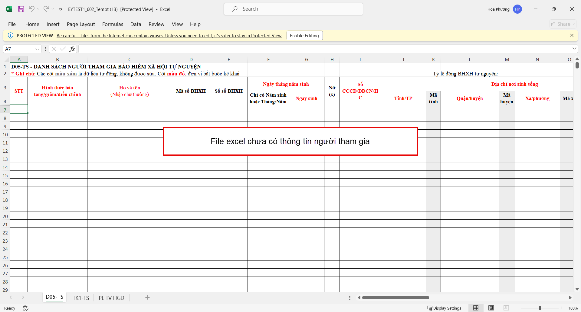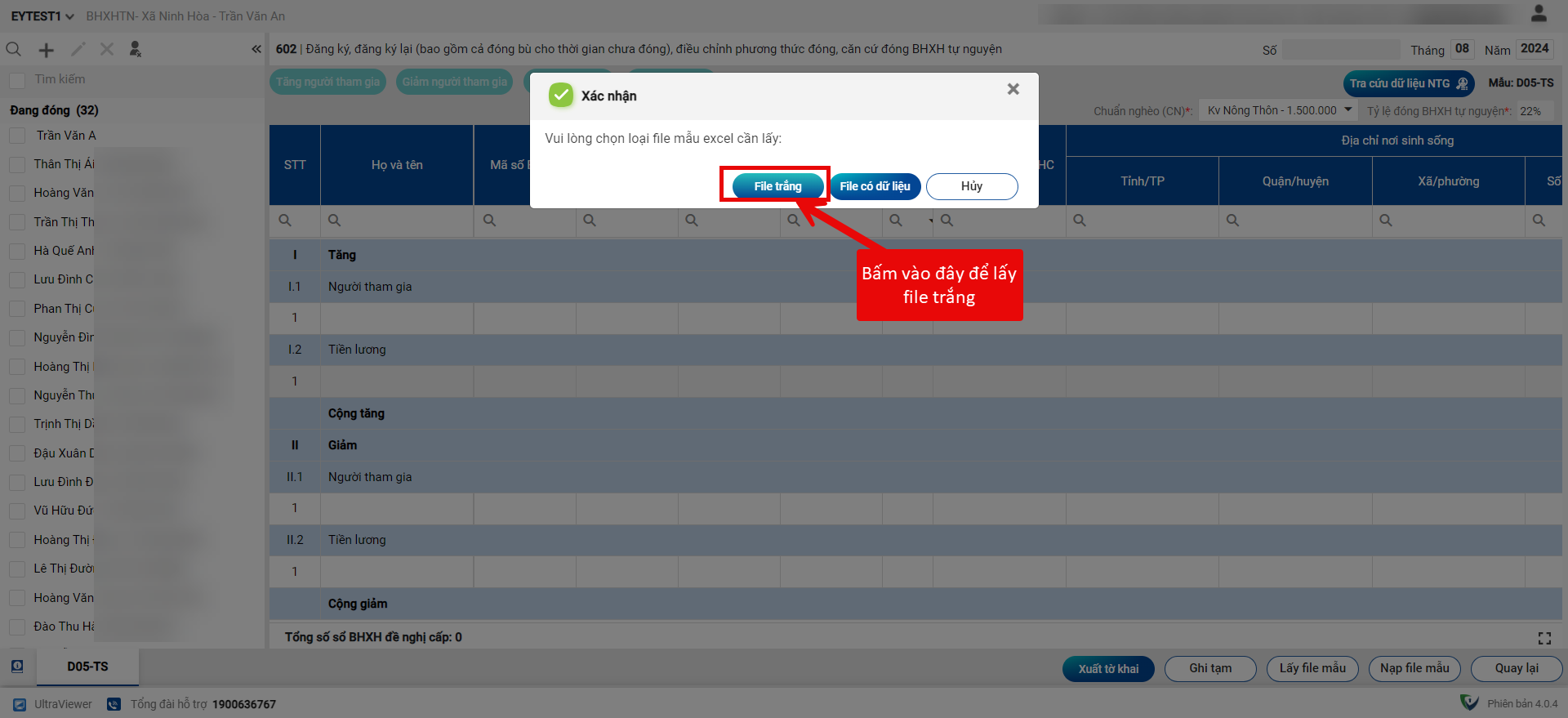 - Bước 4. Chọn File trắng để tải file mẫu excel không có dữ liệu người tham gia về máy tính
