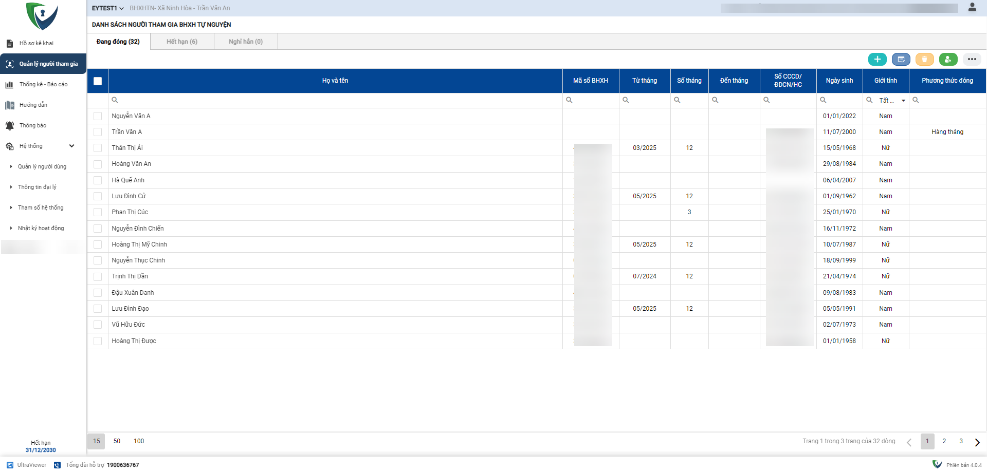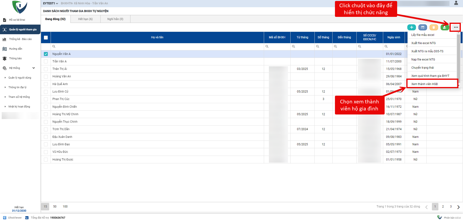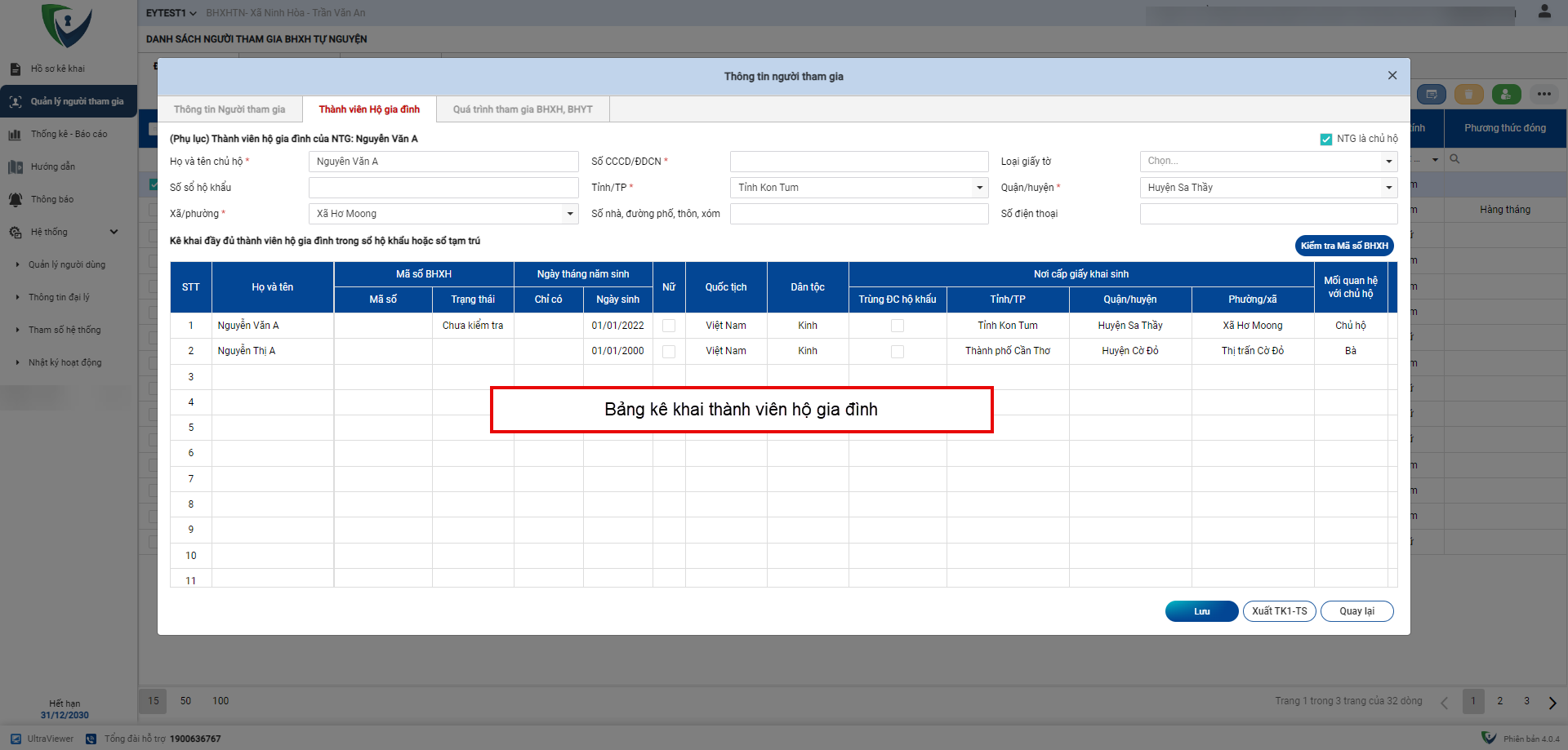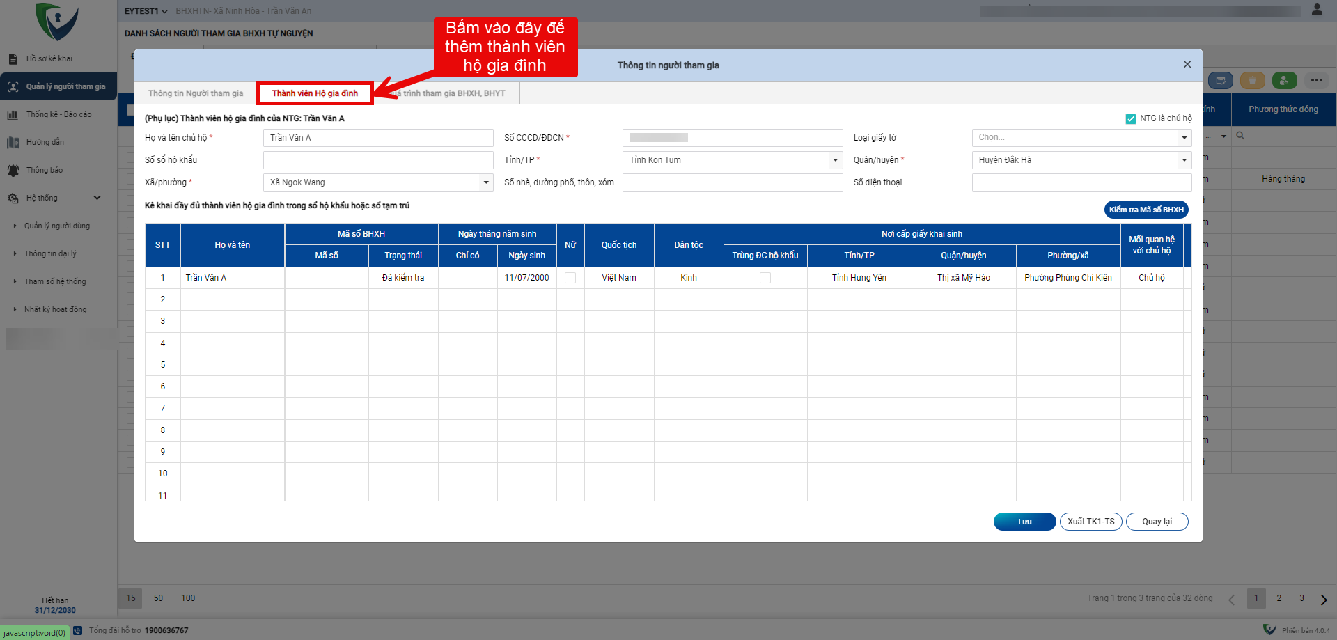 Bước 3. Phần mềm chuyển sang giao diện thành viên hộ gia đình xuất hiện