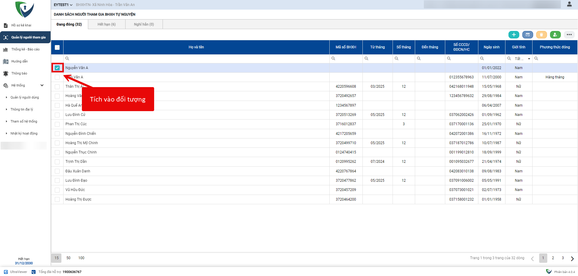 - Bước 2. Bấm vào tên đối tượng cần khai báo thành viên hộ gia đình