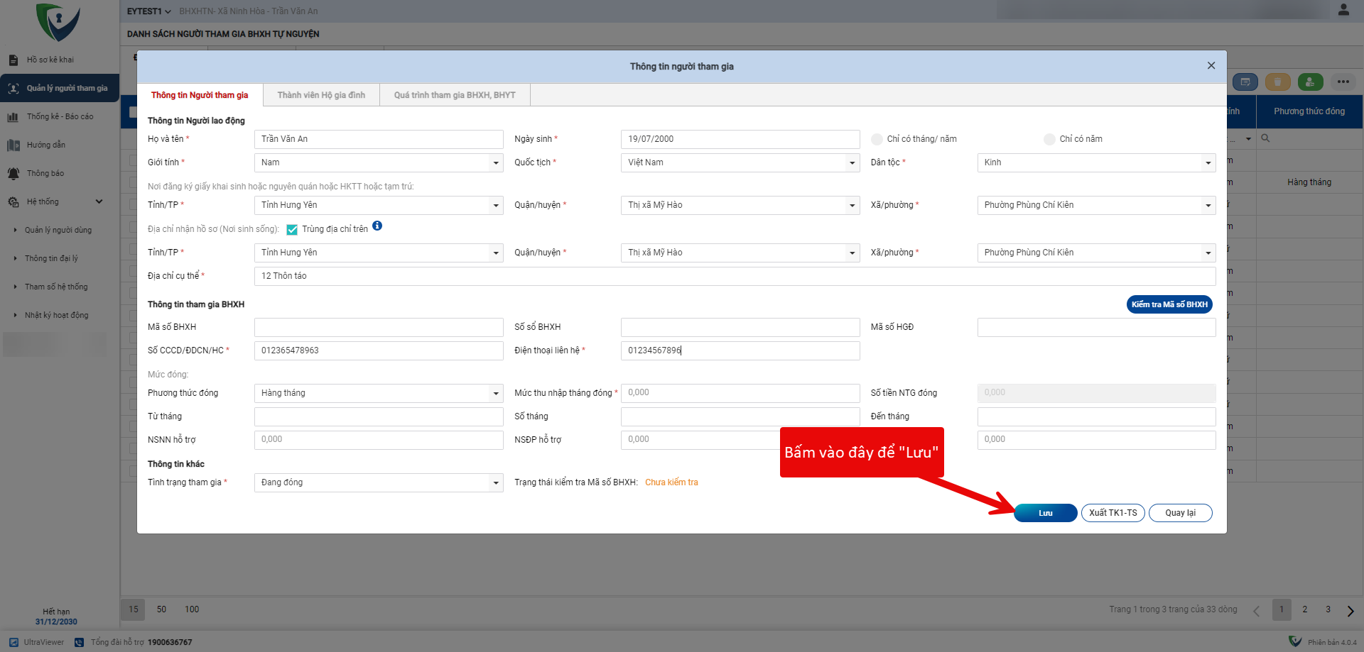 Bước 4. Bấm Lưu để hoàn tất việc thêm mới 1 người tham gia
